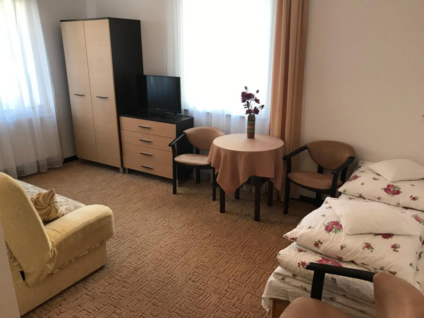 Pokój Trzyosobowy z prywatną łazienką. The triple room features a tea and coffee maker, a dining area, a balcony with garden views as well as a private bathroom boasting a walk-in shower. The unit has 2 beds. Pokój Trzyosobowy - 3 osobowy. Powierzchnia pokoju ok.: 20 mkw. ;