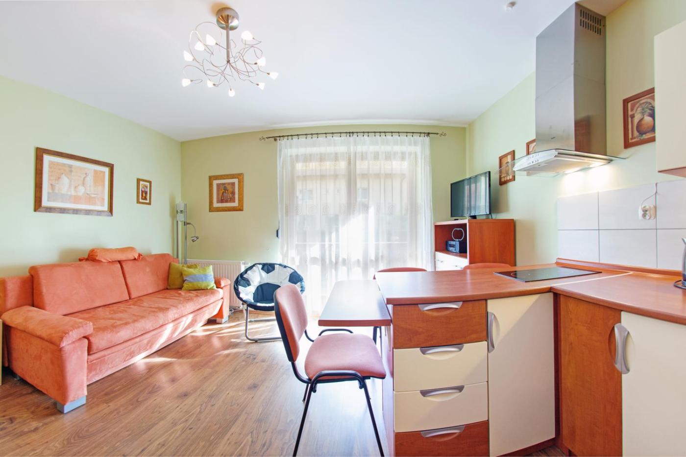 Apartament z 1 sypialnią. Boasting a private entrance, this apartment features 1 living room, 1 separate bedroom and 1 bathroom with a walk-in shower and a hairdryer. The well-fitted kitchenette has a stovetop, a refrigerator, kitchenware and an electric kettle. This apartment features a seating area, a dining area, a flat-screen TV and a balcony. The unit has 3 beds. Apartament - 4 osobowy. Powierzchnia pokoju ok.: 35 mkw.