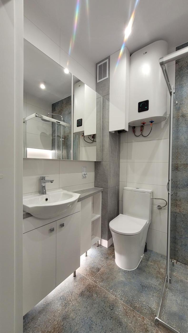 Studio. The studio offers a tea and coffee maker, a seating area, as well as a private bathroom boasting a shower and a hairdryer. Meals can be prepared in the well-fitted kitchen, which features a stovetop, a refrigerator, a dishwasher and kitchenware. The air-conditioned studio features a flat-screen TV with streaming services, a washing machine, a private entrance, soundproof walls as well as ancourtyard view. The unit has 2 beds. Studio - 4 osobowy. Powierzchnia pokoju ok.: 36 mkw.