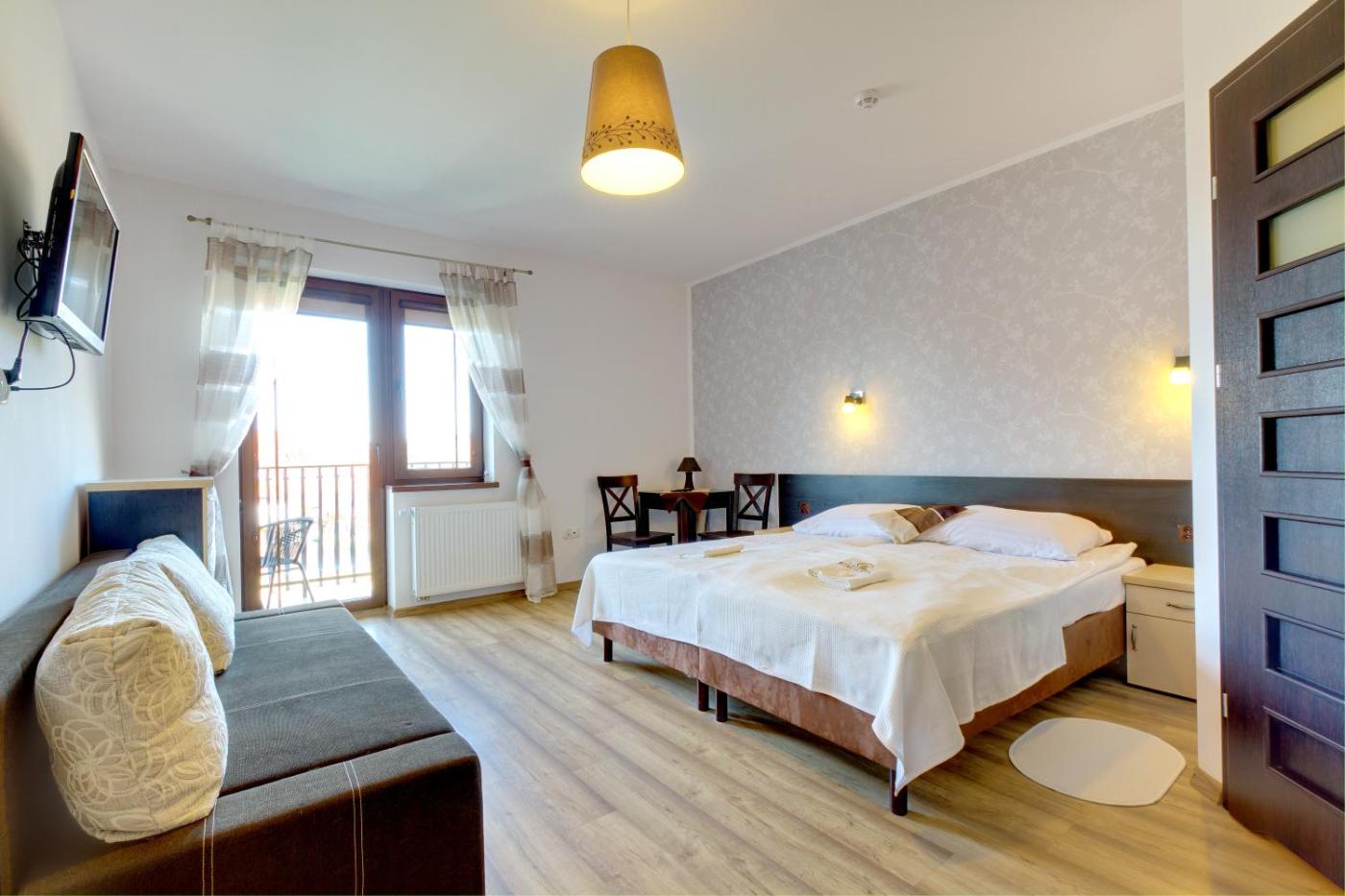 Pokój Czteroosobowy z balkonem. The quadruple room offers a wardrobe, an electric kettle, a balcony with garden views as well as a private bathroom featuring a shower. The unit offers 3 beds. Pokój Czteroosobowy - 4 osobowy. Powierzchnia pokoju ok.: 21 mkw. ;