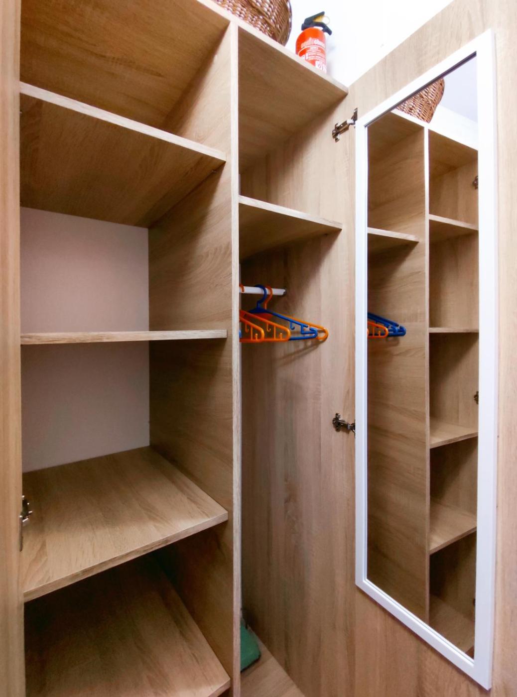 Apartament z 1 sypialnią. This apartment includes a kitchenette, a seating area, 1 separate bedroom and 1 bathroom with a shower. The well-fitted kitchenette has a stovetop, a refrigerator, kitchenware and a tea and coffee maker. The apartment features parquet floors and offers a wardrobe, tumble dryer and city views. The unit has 1 bed. Apartament - 2 osobowy. Powierzchnia pokoju ok.: 18 mkw.