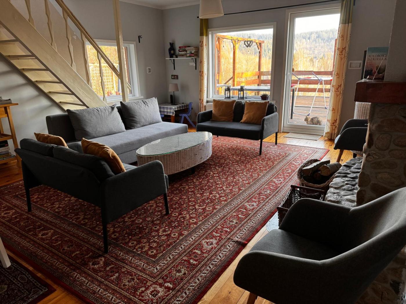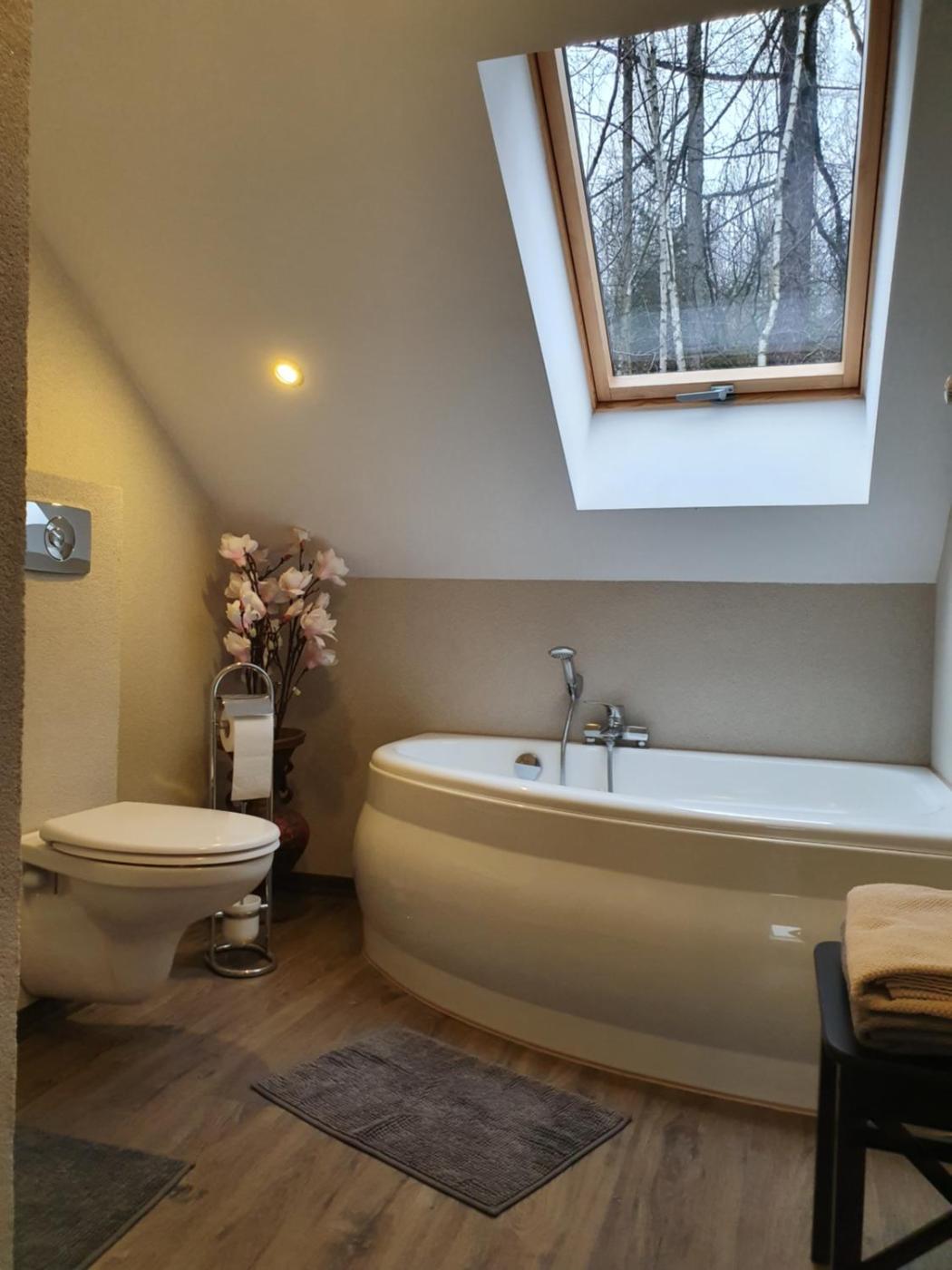 Dom z 4 sypialniami. This luxurious holiday home has a pool with a view, a sauna and a fireplace. This spacious holiday home comes with 1 living room, 4 separate bedrooms and 5 bathrooms with a bath and a shower. Guests will find a stovetop, a refrigerator, a dishwasher and kitchenware in the well-equipped kitchenette. The holiday home also includes a barbecue. This air-conditioned holiday home includes a dining area, a flat-screen TV with streaming services a tea and coffee maker and a terrace. The unit has 7 beds. Dom wakacyjny - 9 osobowy. Powierzchnia pokoju ok.: 170 mkw.