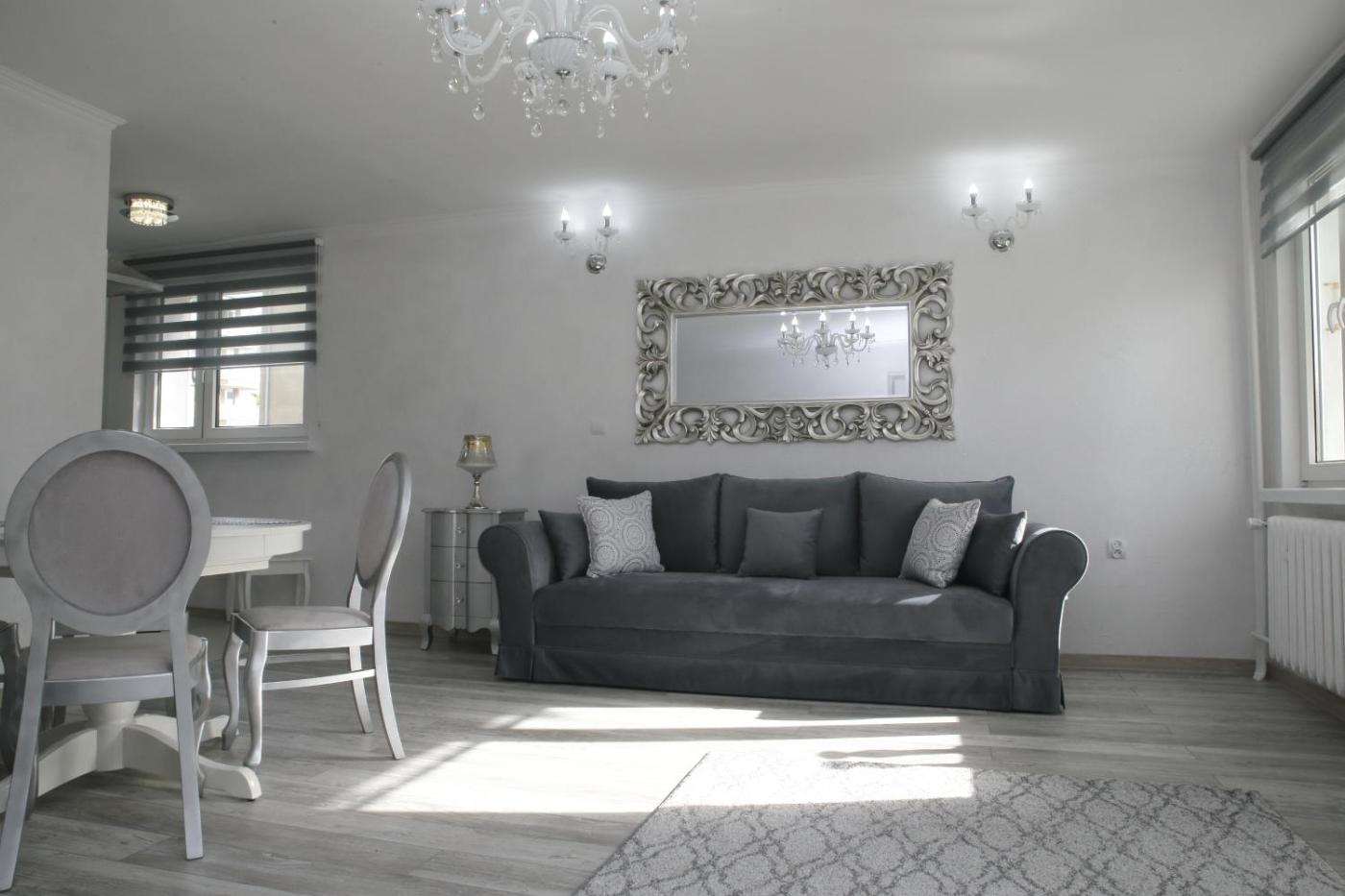 Apartament z 2 sypialniami. Guests can make meals in the kitchenette that features a stovetop, a refrigerator, a dishwasher and kitchenware. The apartment features a washing machine, a seating area, a dining area, a flat-screen TV with cable channels, as well as city views. The unit has 3 beds. Apartament - 6 osobowy. Powierzchnia pokoju ok.: 55 mkw.