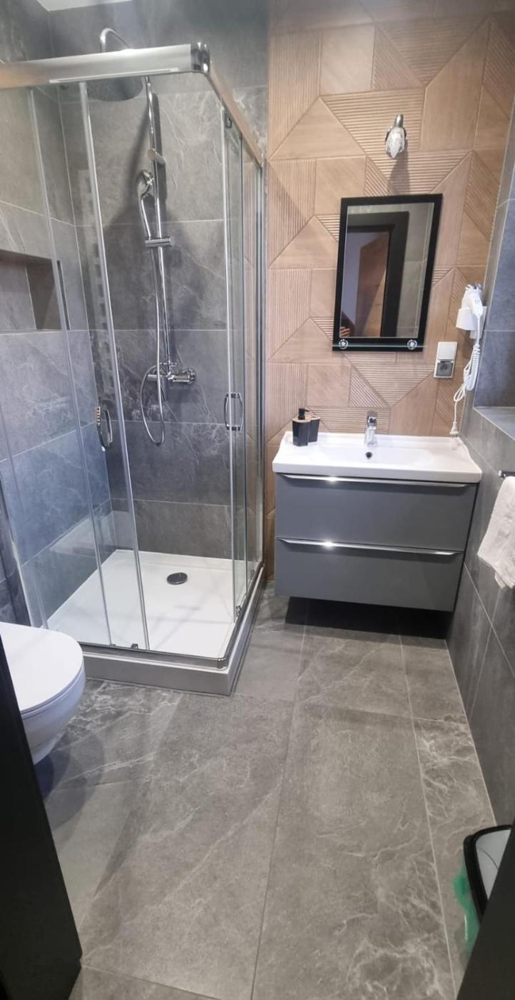Pokój trzyosobowy. The triple room offers a carpeted floor, heating, as well as a private bathroom boasting a shower and a hairdryer. The triple room features a wardrobe, a safe deposit box, an electric kettle, a flat-screen TV with cable channels, as well as garden views. The unit has 3 beds. Pokój Trzyosobowy - 3 osobowy. Powierzchnia pokoju ok.: 30 mkw. ;