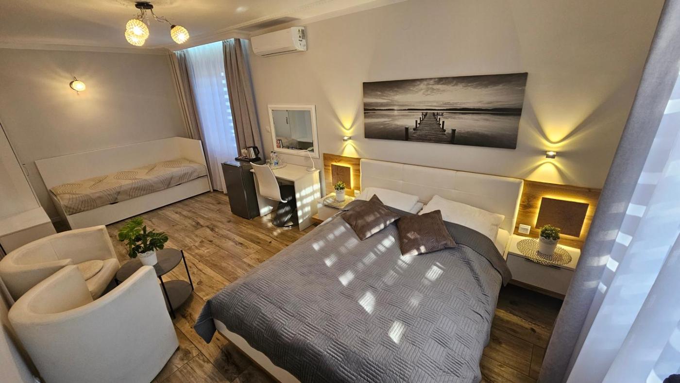 Pokój Dwuosobowy typu Deluxe z wanną. This double room offers a hot tub. The double room includes a private bathroom equipped with a bath, a shower and a hairdryer. The double room provides a wardrobe, an electric kettle, a sofa, a carpeted floor, as well as a flat-screen TV with cable channels. The unit offers 1 bed. Pokój Dwuosobowy - 2 osobowy. Powierzchnia pokoju ok.: 20 mkw.