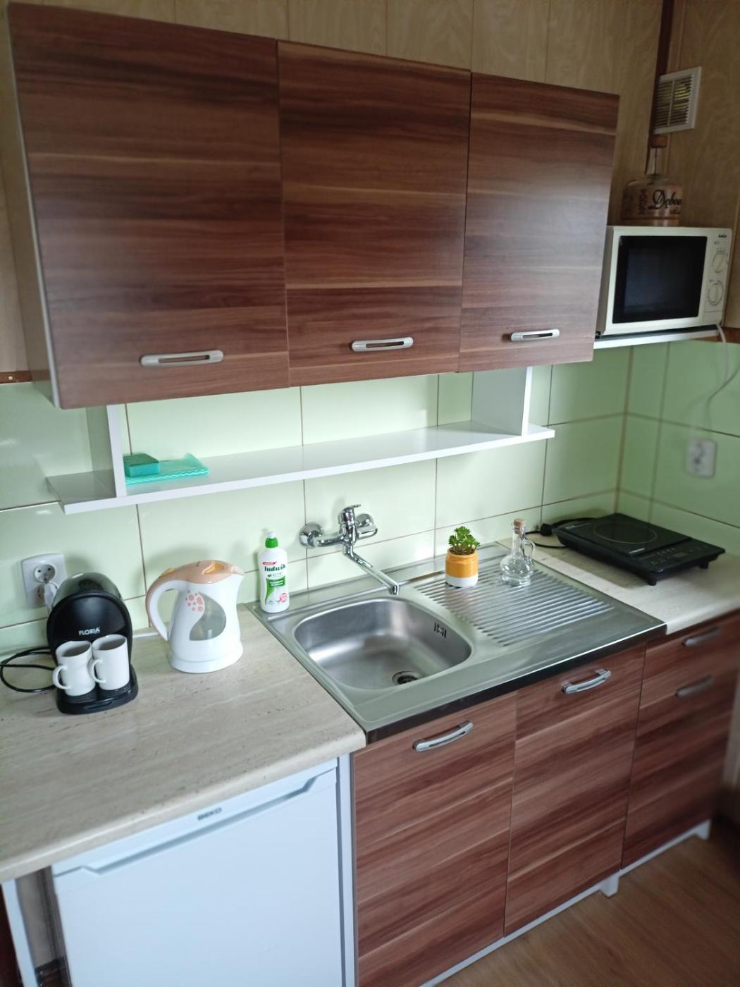 Dom wakacyjny. Featuring a private entrance, this holiday home also is comprised of 1 living room, 1 separate bedroom and 1 bathroom with a shower. Guests will find a stovetop, a refrigerator, kitchenware and a microwave in the well-equipped kitchenette. The holiday home also has a barbecue. Boasting a terrace, this holiday home also offers a coffee machine, a dining area and a flat-screen TV. The unit offers 2 beds. Dom wakacyjny - 5 osobowy. Powierzchnia pokoju ok.: 25 mkw.