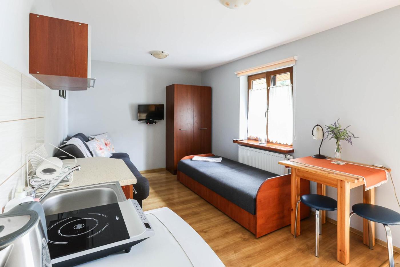 Do dyspozycji Gości jest aneks kuchenny z pełnym wyposażeniem, w tym lodówką i czajnikiem.