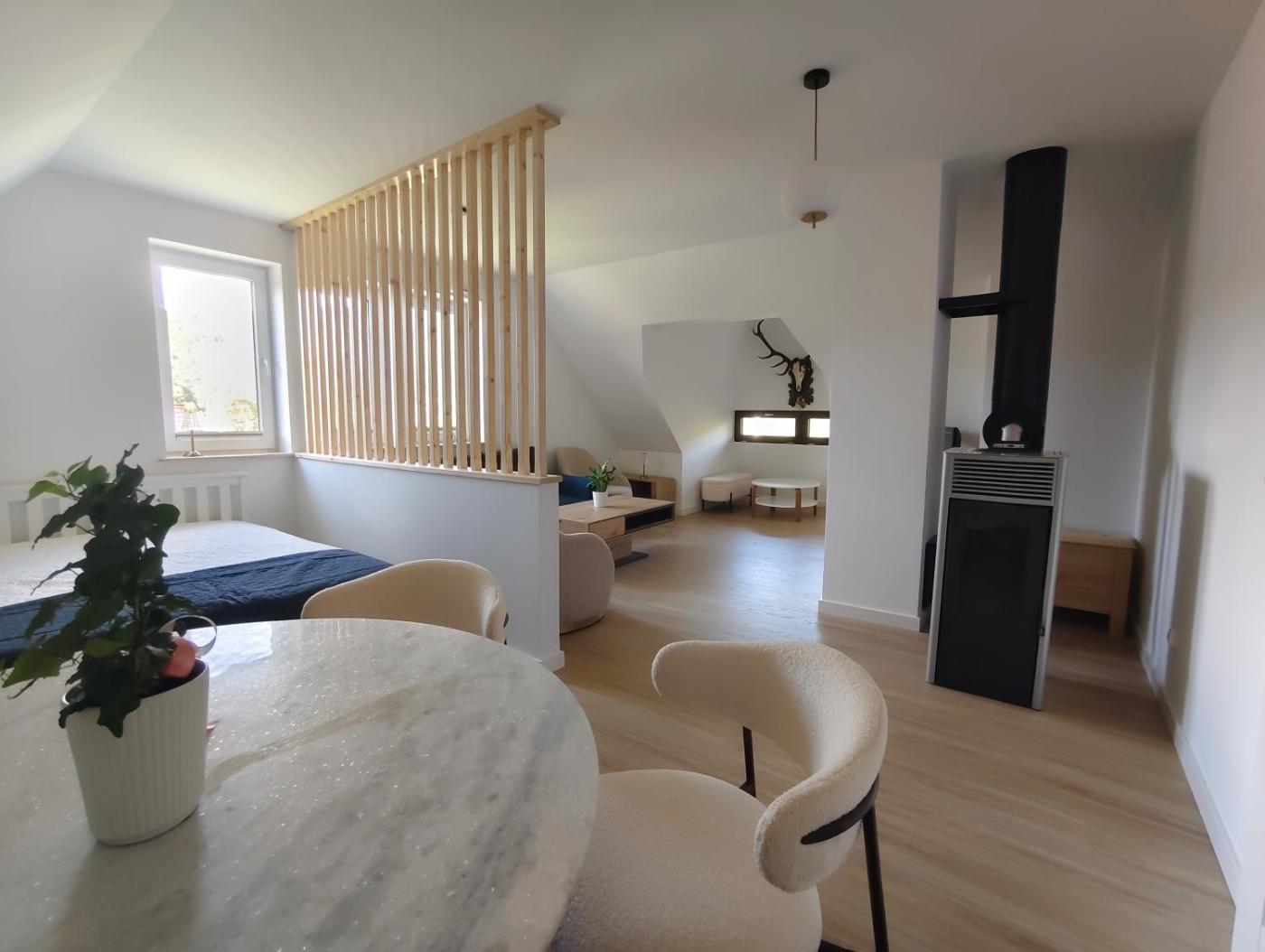Apartament z 2 sypialniami. The fireplace is the standout feature of this apartment. This spacious apartment features 1 living room, 2 separate bedrooms and 1 bathroom with a shower and a hairdryer. Meals can be prepared in the well-fitted kitchen, which has a refrigerator, a dishwasher, kitchenware and an oven. The apartment features a flat-screen TV with streaming services, a washing machine, a seating area, a dining area as well as garden views. The unit has 4 beds. Apartament - 6 osobowy. Powierzchnia pokoju ok.: 62 mkw.