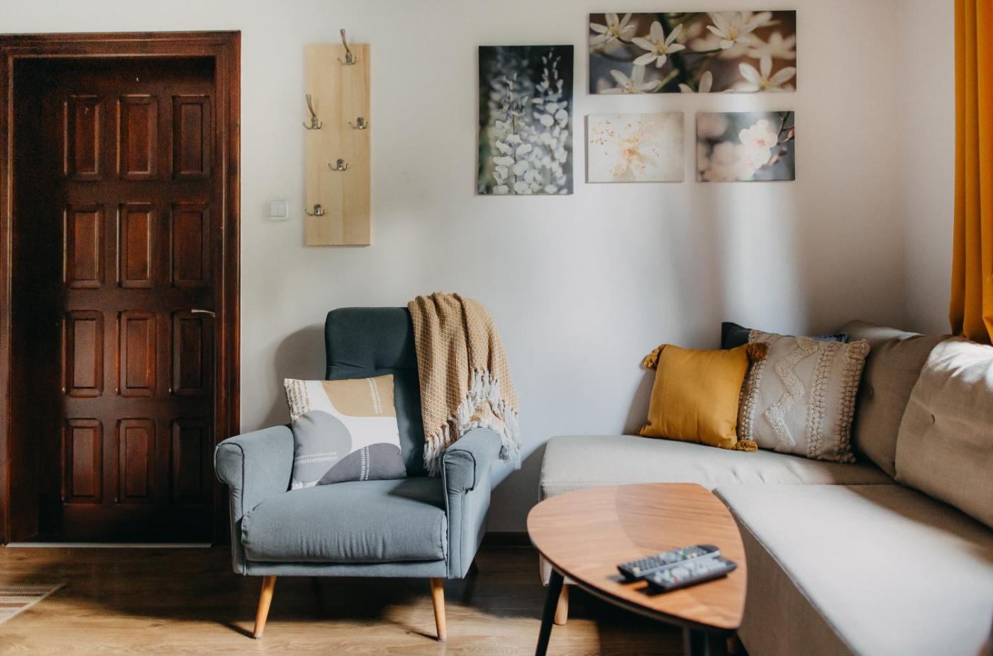 Dom z 1 sypialnią. The fireplace is a top feature of this holiday home. Boasting a private entrance, this air-conditioned holiday home comes with a kitchenette, 1 bedroom and 1 bathroom with a shower and a hairdryer. Guests will find a stovetop, a refrigerator, kitchenware and a microwave in the fully equipped kitchenette. The holiday home also includes a barbecue. Featuring a terrace with garden views, this holiday home also features a tea and coffee maker and a flat-screen TV. The unit has 1 bed. Dom wakacyjny - 2 osobowy. Powierzchnia pokoju ok.: 30 mkw.