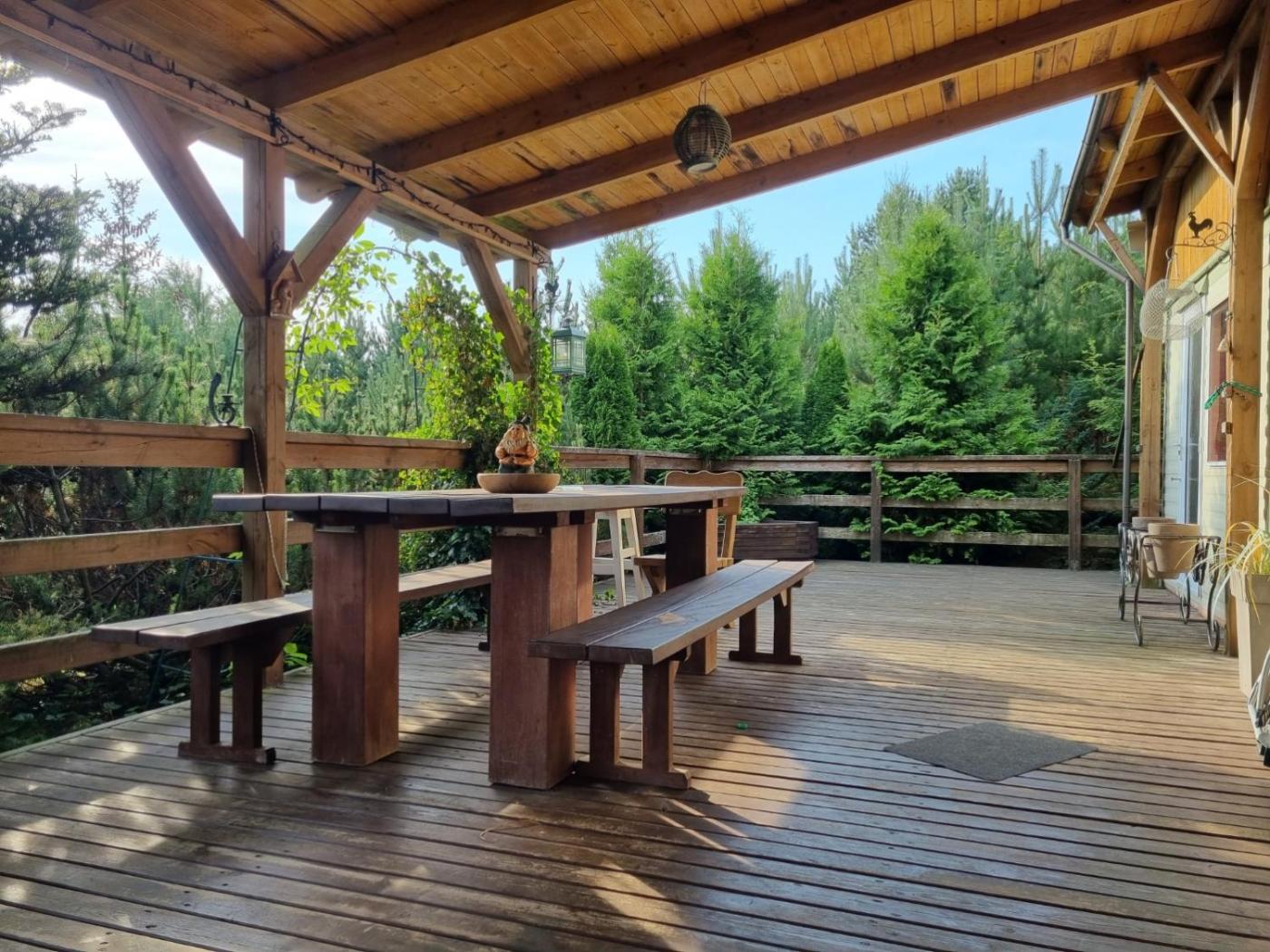 Dom z 2 sypialniami. Boasting a private entrance, this holiday home also features 1 living room, 2 separate bedrooms and 1 bathroom with a shower. Meals can be prepared in the kitchen, which has a stovetop, a refrigerator, kitchenware and an oven. The holiday home features a seating area, a wardrobe, an electric kettle as well as a terrace with garden views. The unit has 2 beds and 2 futons. Dom wakacyjny - 6 osobowy. Powierzchnia pokoju ok.: 50 mkw.