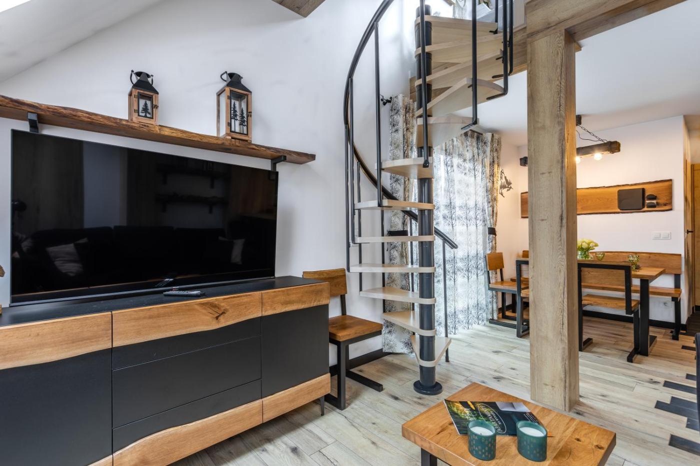 Apartament dwupoziomowy. This apartment comes with 1 living room, 1 separate bedroom and 1 bathroom with a shower and a hairdryer. In the fully equipped kitchenette, guests will find a stovetop, a refrigerator, a dishwasher and kitchenware. This apartment has a coffee machine, heating and a flat-screen TV. The unit has 3 beds. Apartament - 5 osobowy. Powierzchnia pokoju ok.: 39 mkw.